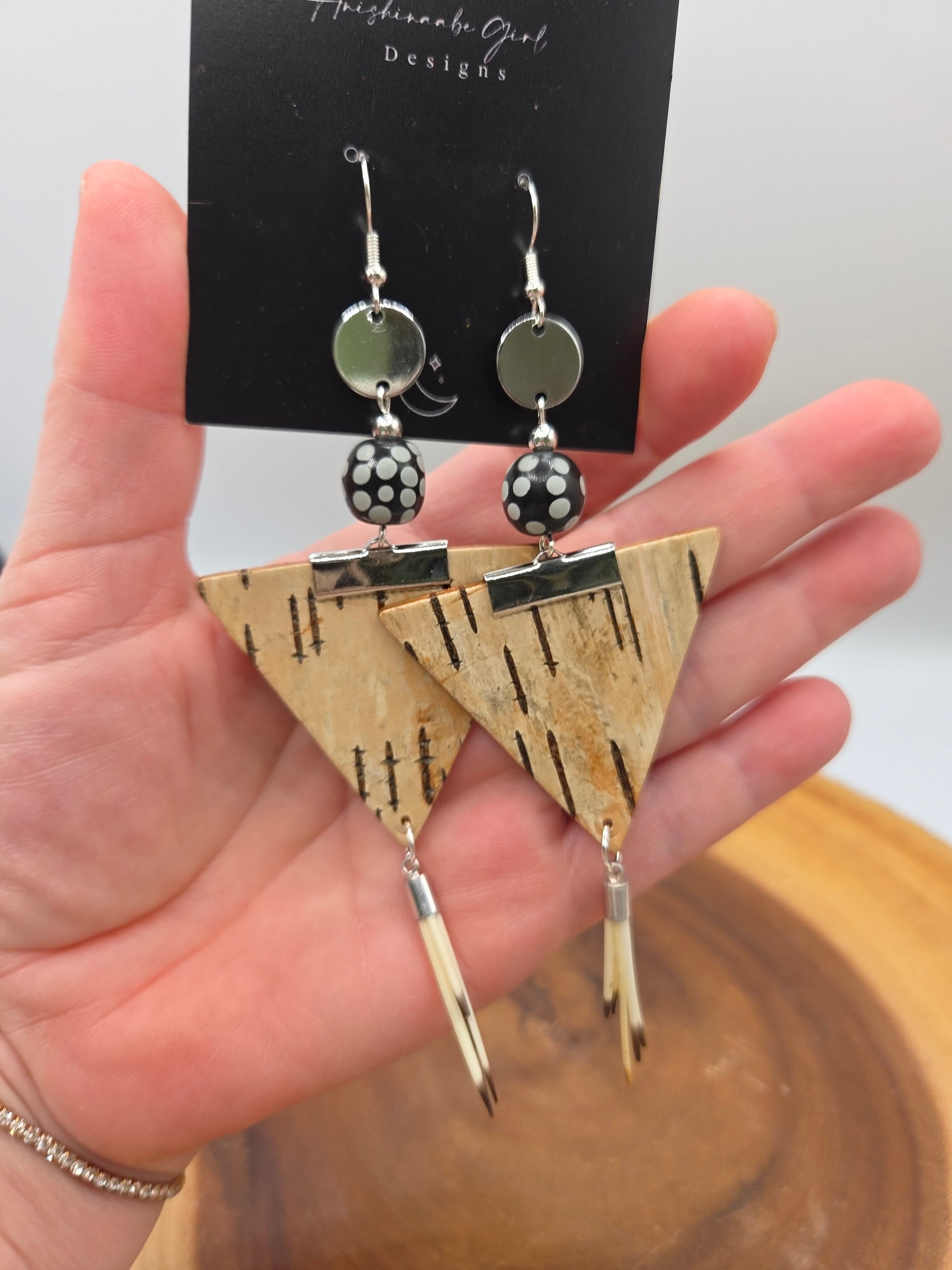 Birchbark, Quill and Skunk Bead Trade Earrings