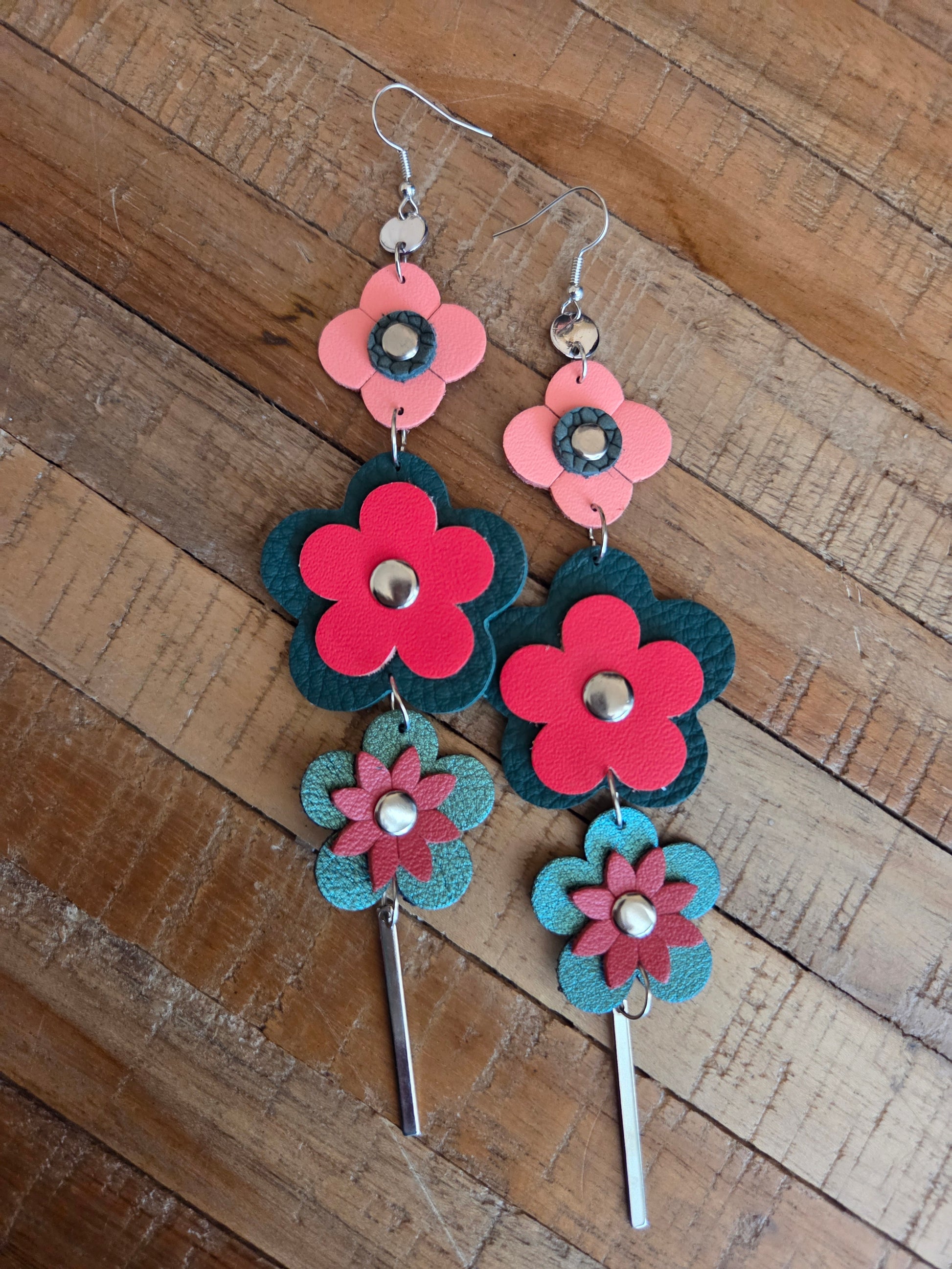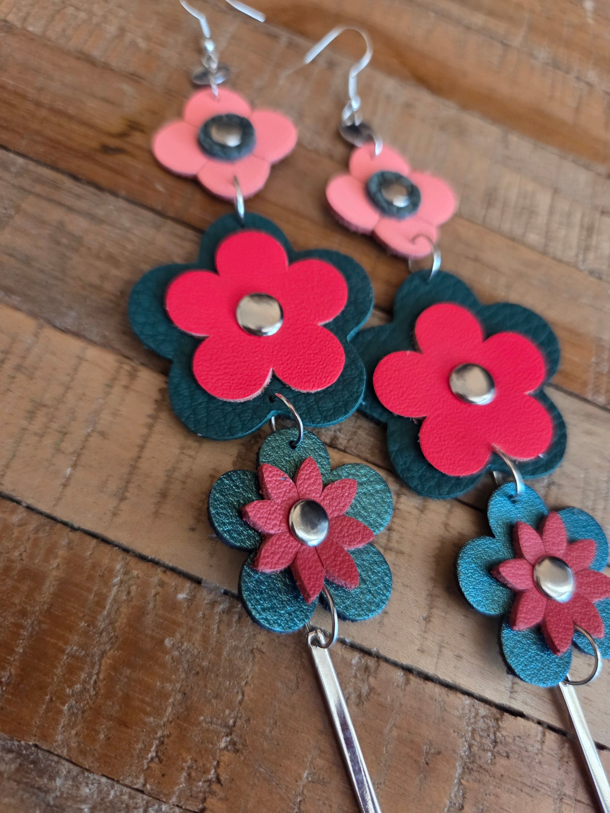 Hunter Green and Salmon pink Leather Flower Shoulder drops