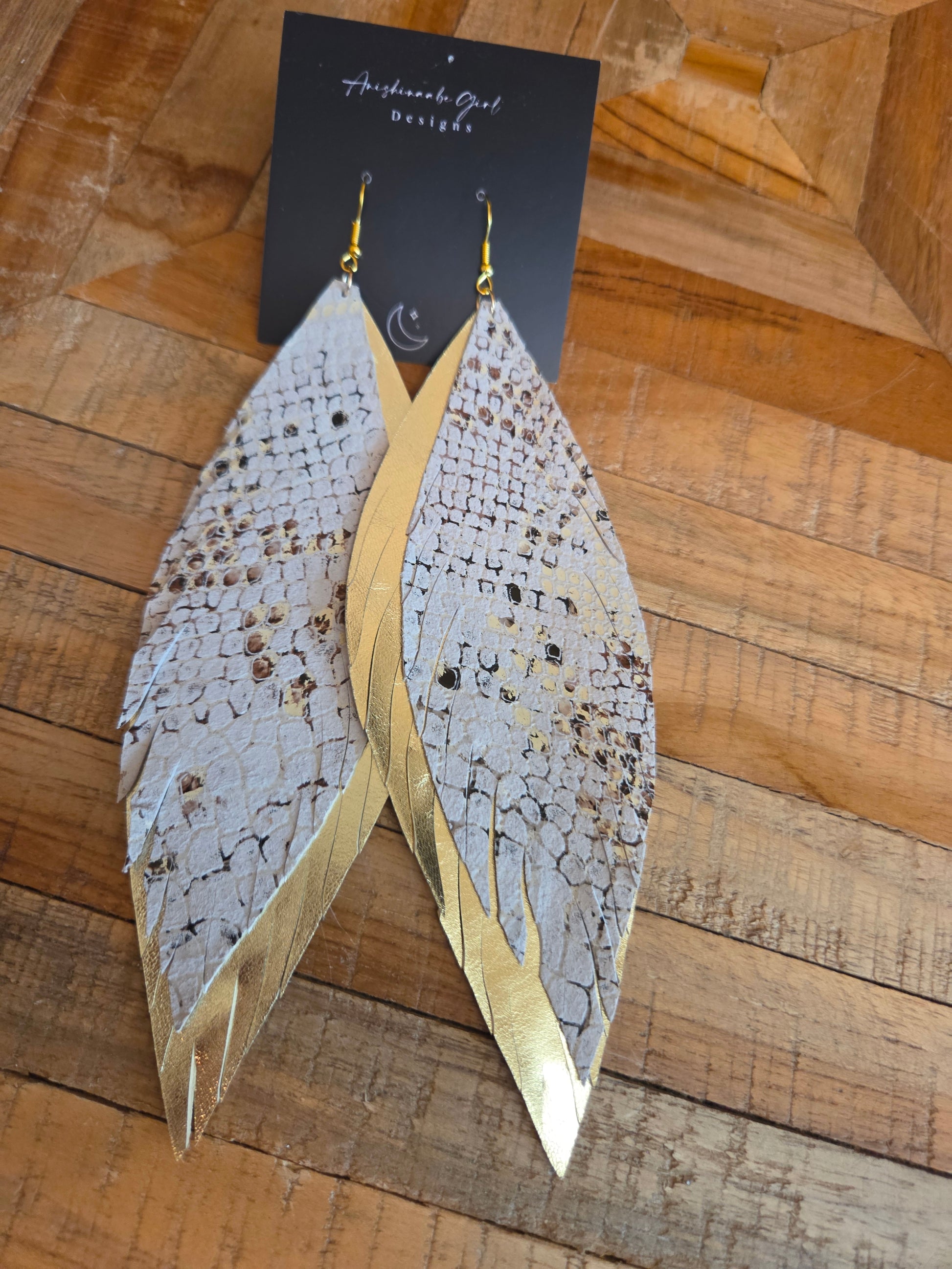 - Metallic gold Italian leather and snakeskin printed dusty pink/cream leather