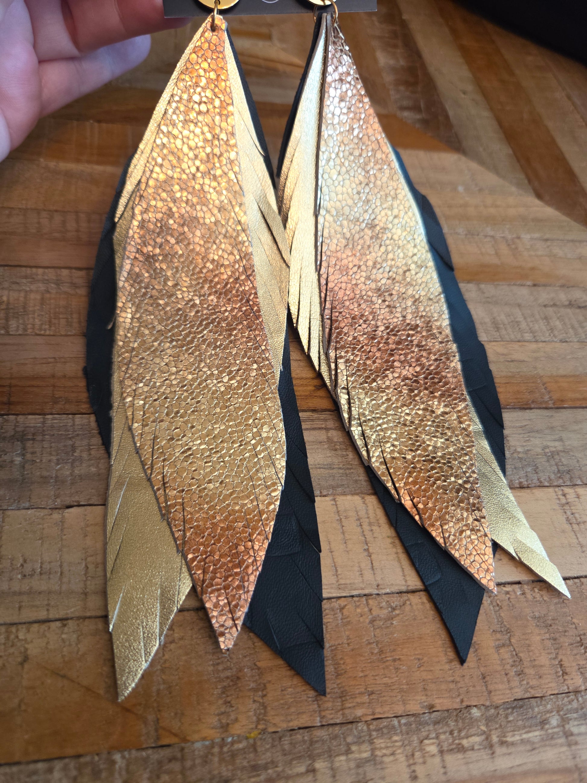 - Metallic gold Italian leather and black buttery Italian lambskin