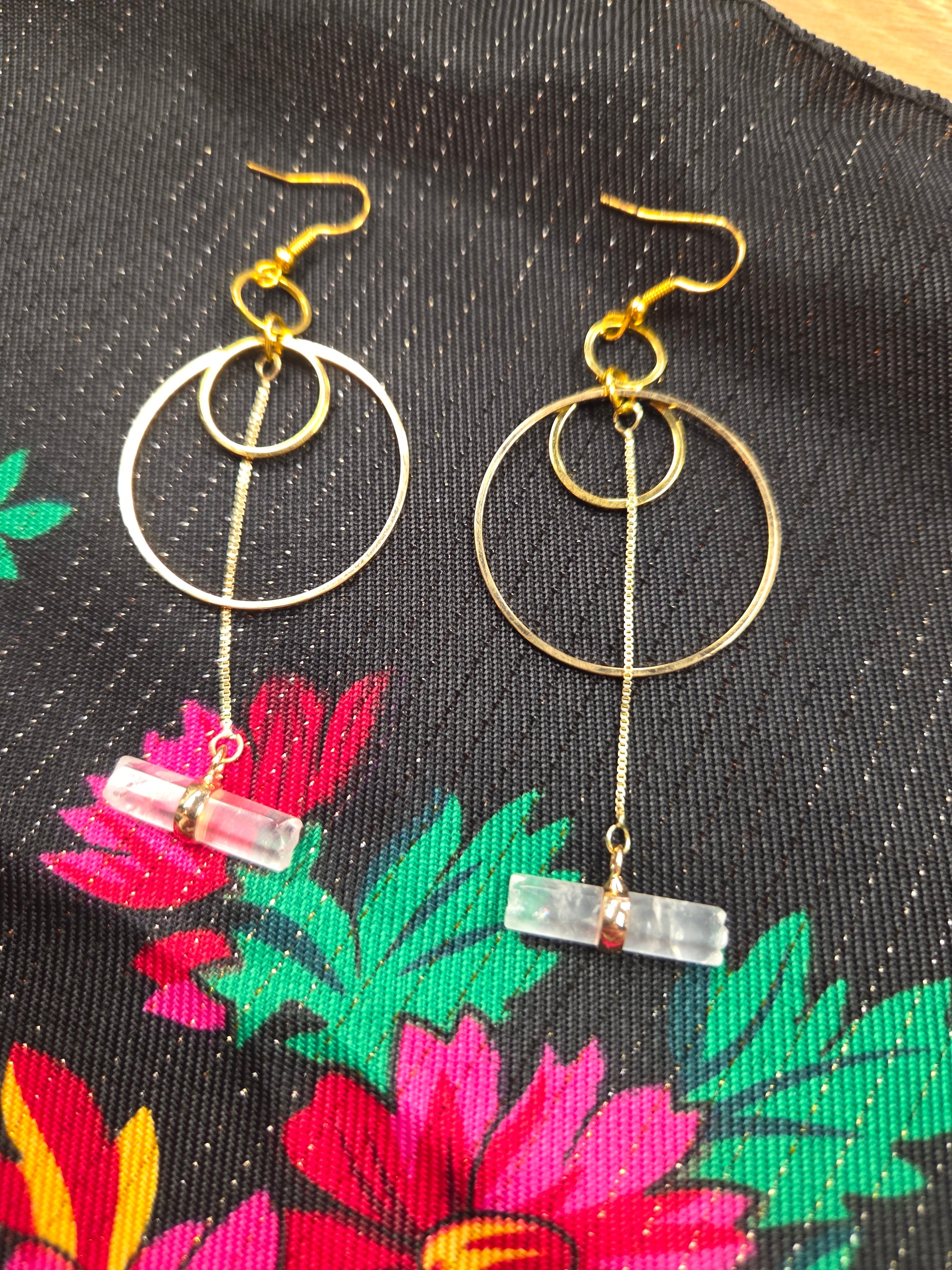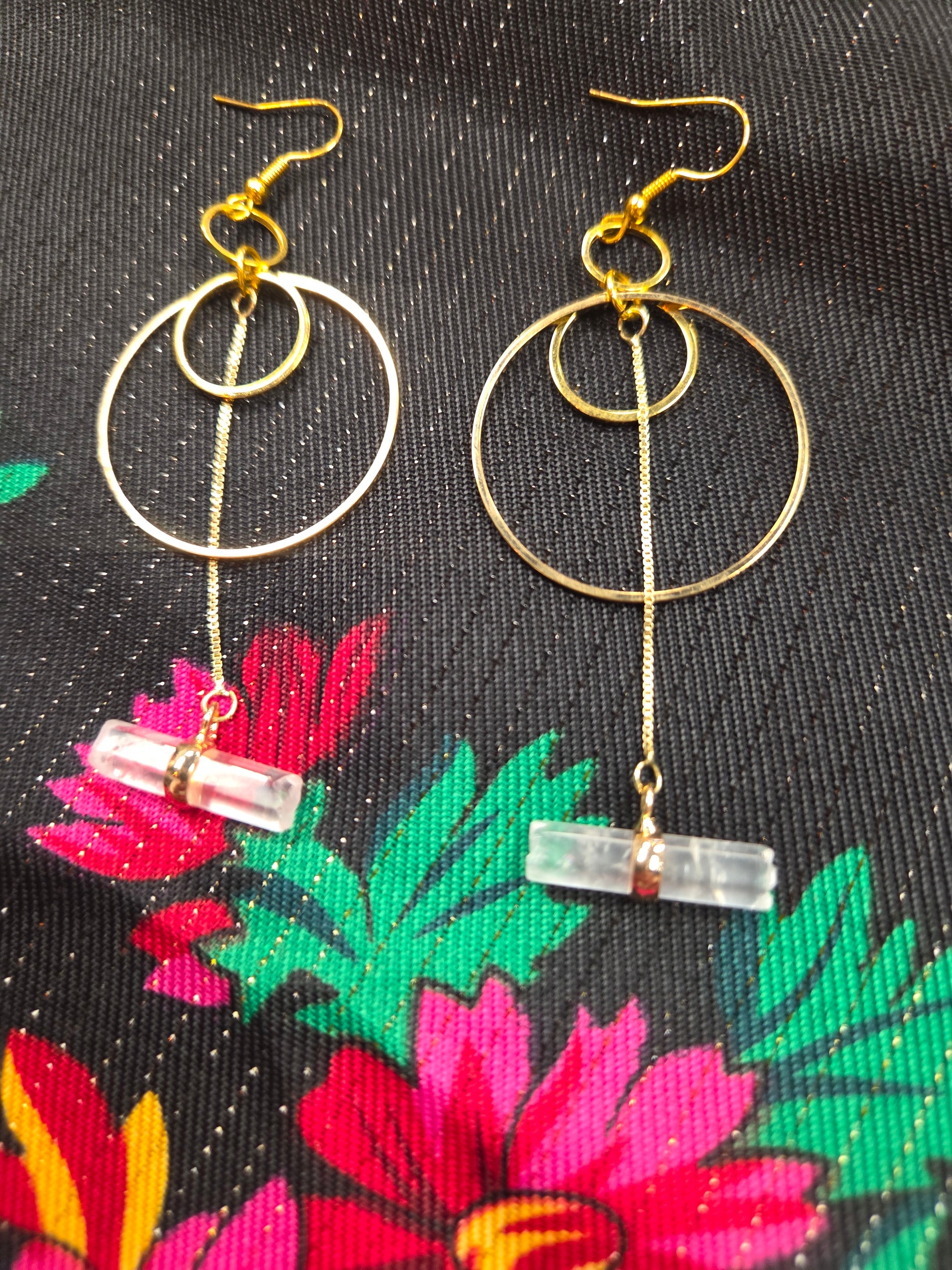 - Quartz crystal drops on delicate chain & gold plated hoops