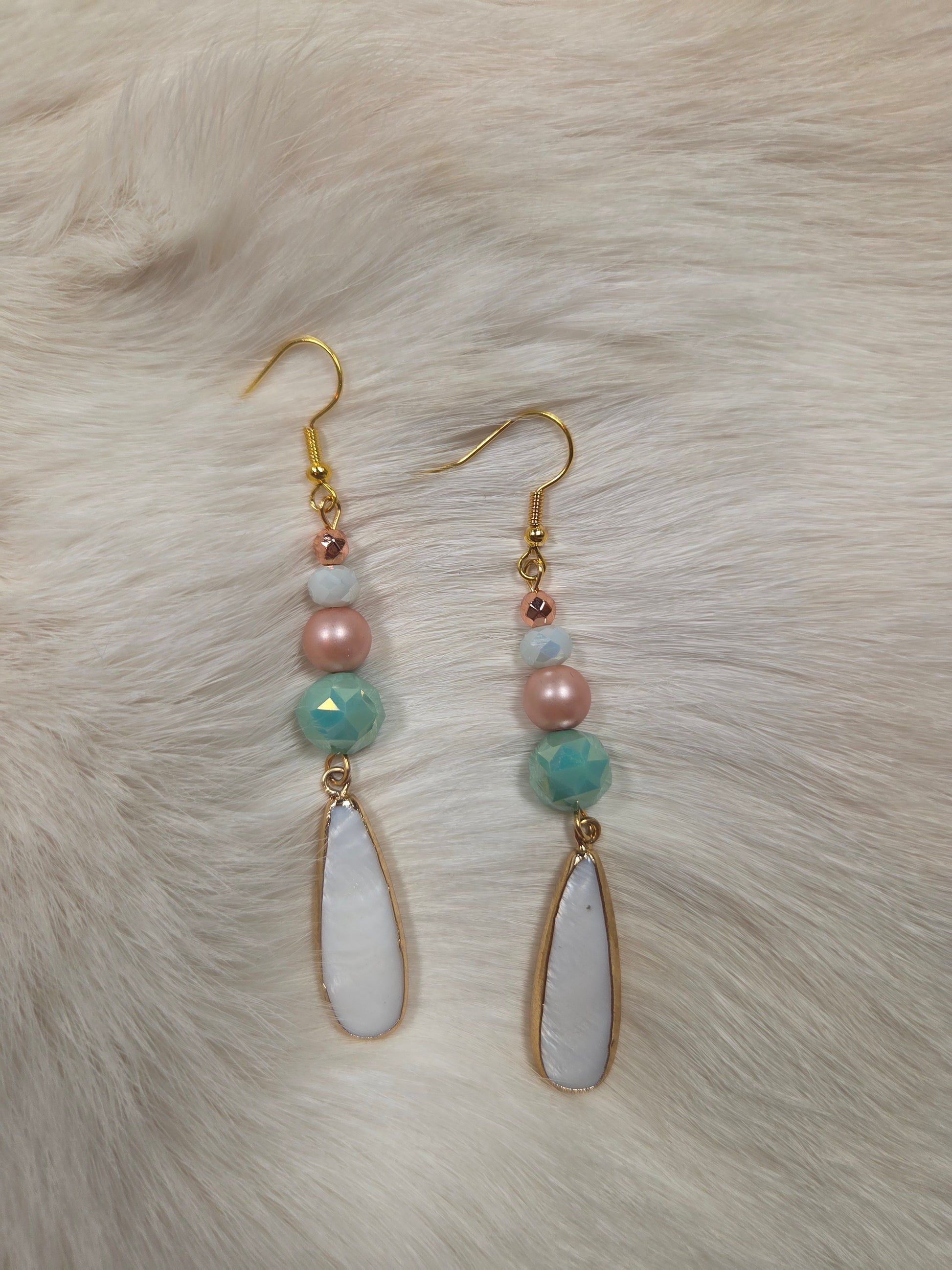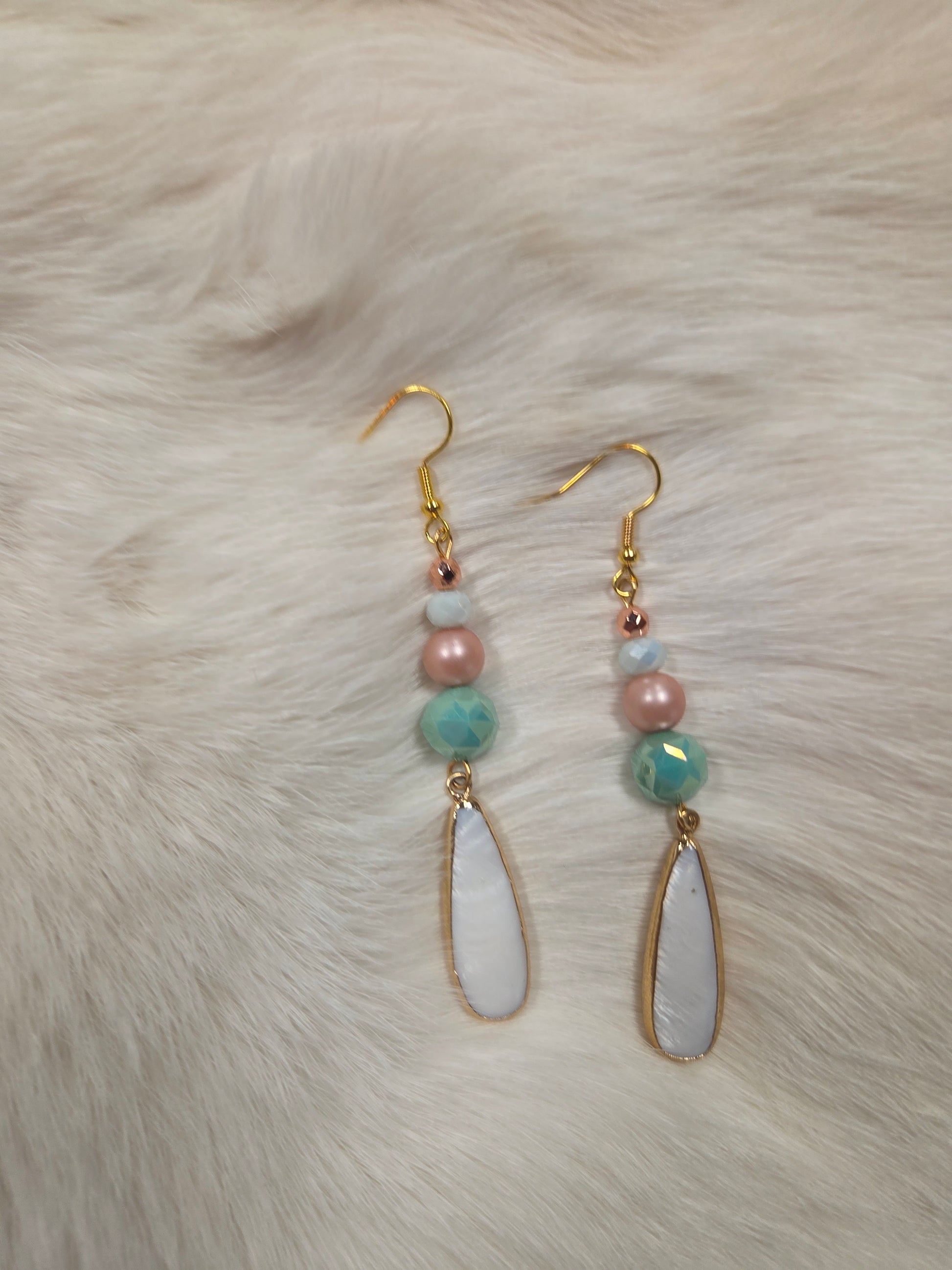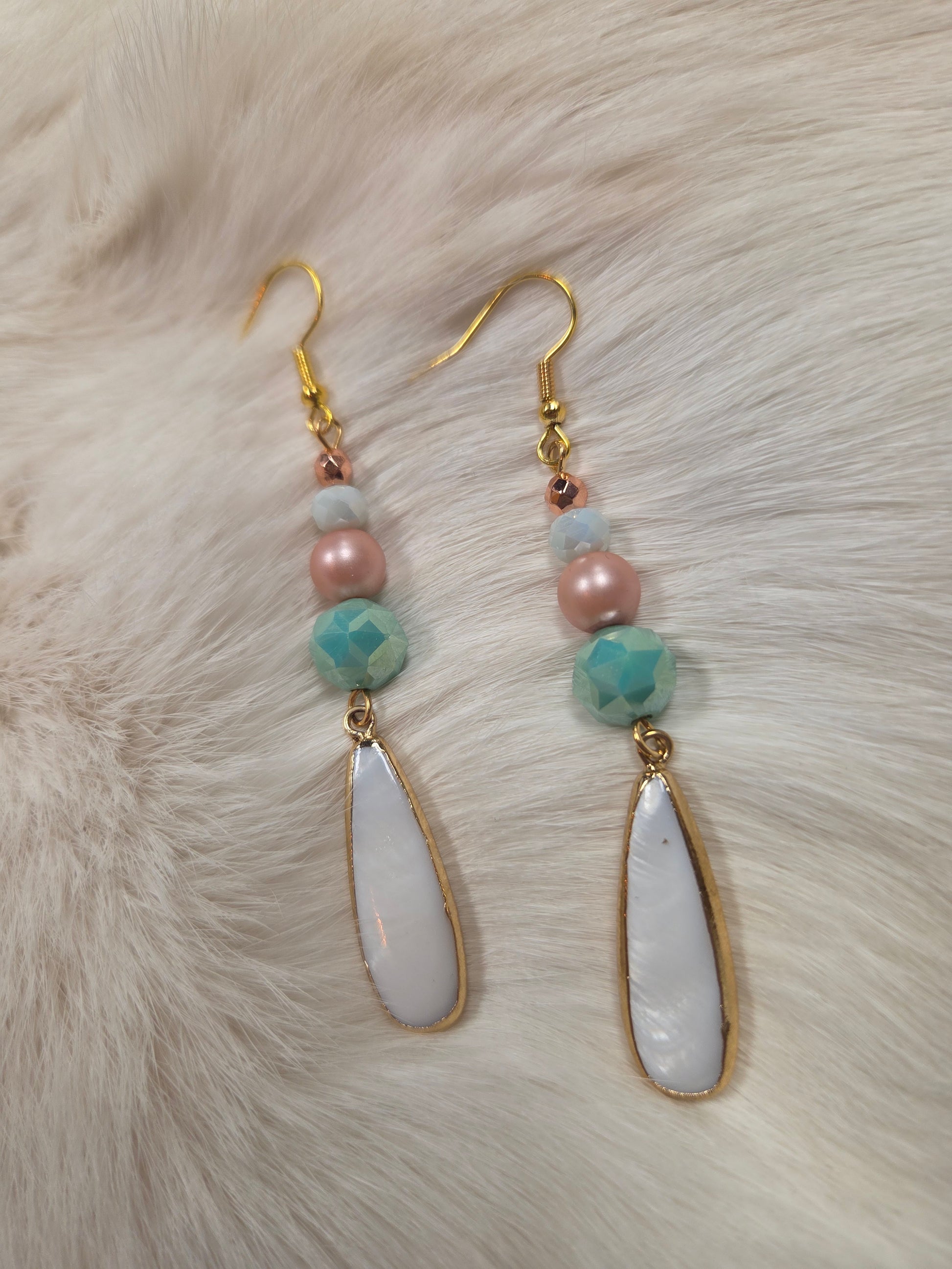 - Teardrop shell earrings with glass faceted beads